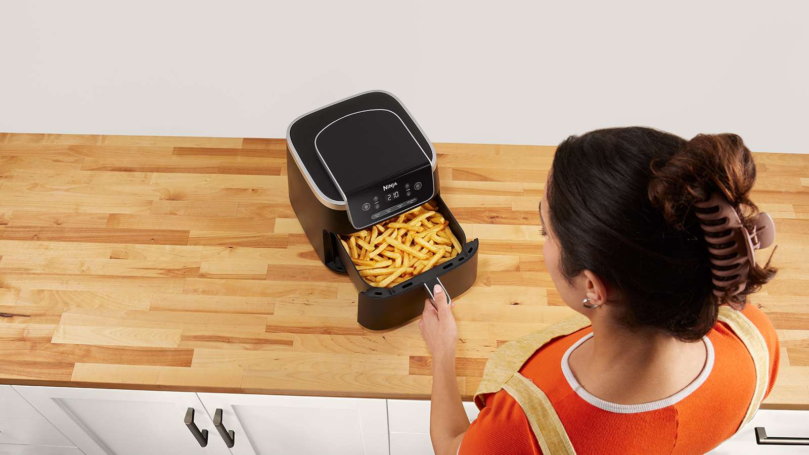 Vi vet att livet är hektiskt med många störningsmoment så Ninjas air fryer slutar automatiskt att tillaga när den digitala timern slutar.